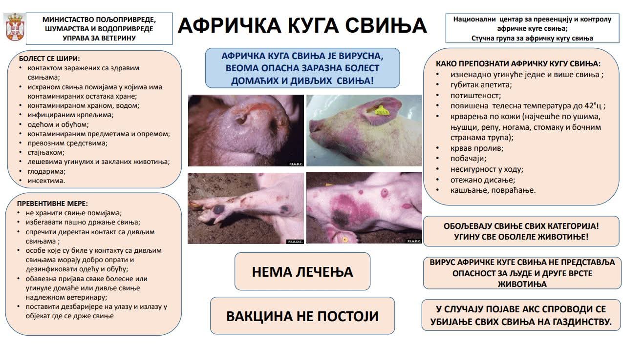 obaveštavamo vas da je na teritoriji opštine Bogatić ponovo zabeležena pojava Afričke svinjske kuge, ovog puta u Crnoj Bari.